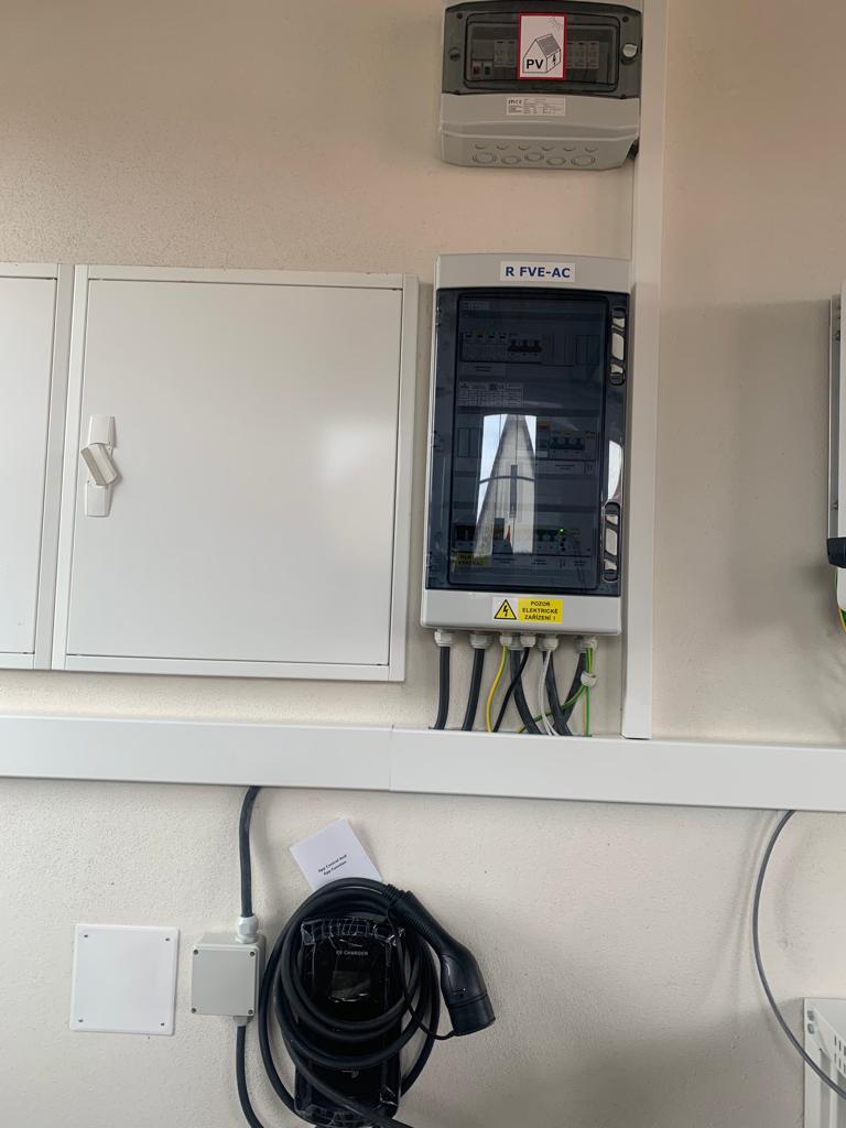 Součástí projektu bylo osazení 21 ks FV panelů DAH DHM-72L9-455W a instalace třífázového hybridního měniče Bluesun BSE10KH3 s akumulací. Nabíjecí stanice typu Wallbox EV – NC-EVC03 je napojena na stávající hlavní rozvaděč RH a chráněna samostatným proudovým chráničem a jističem